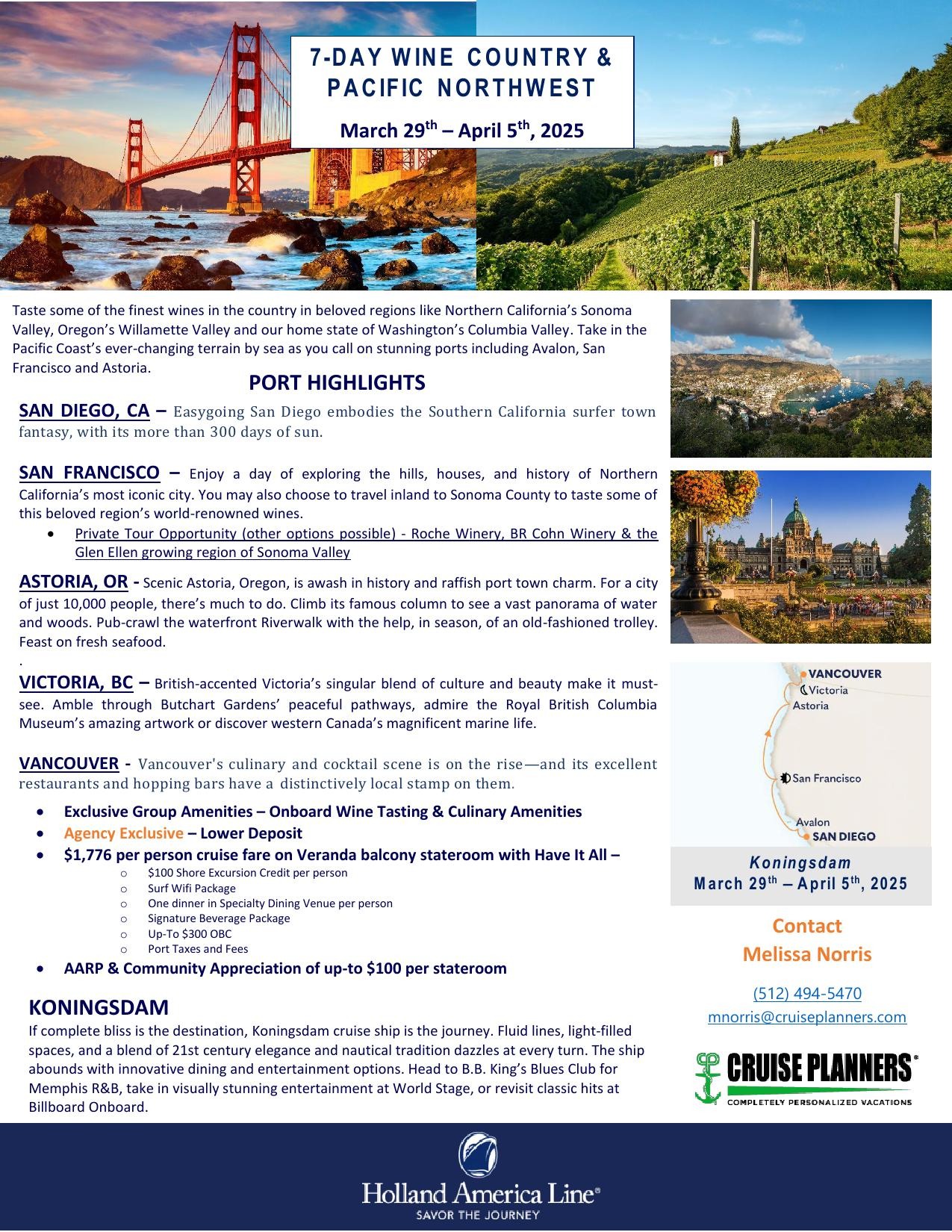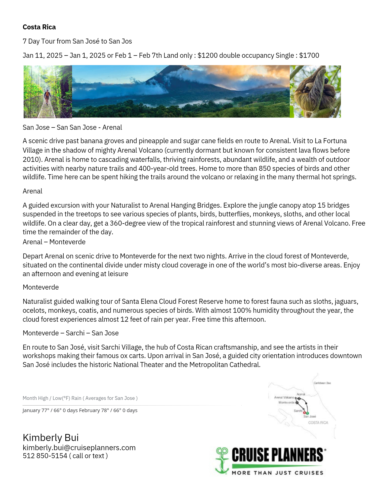 We have 3 great trips coming up.  If you are interested please contact Melissa or Kimberly and we'd be happy to help you or tell you all about it.