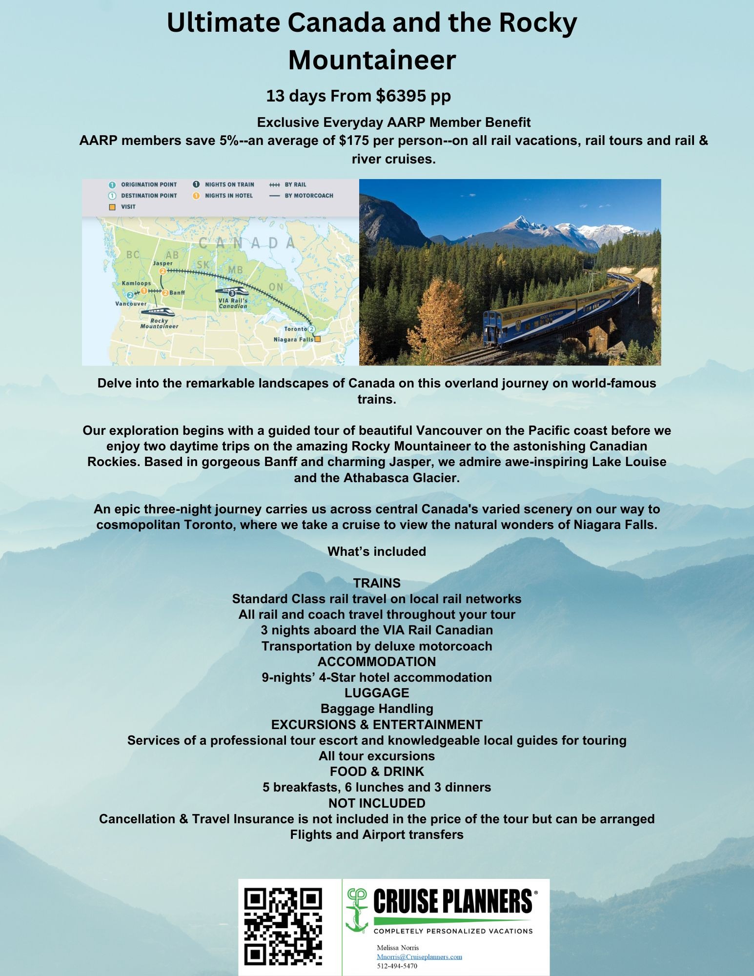 Planes, trains and boat.  We have it all and there is something for everybody.   Come join us on one of our groups we have already set up or tell us what YOU want to do and let us build you your dream vacation.
